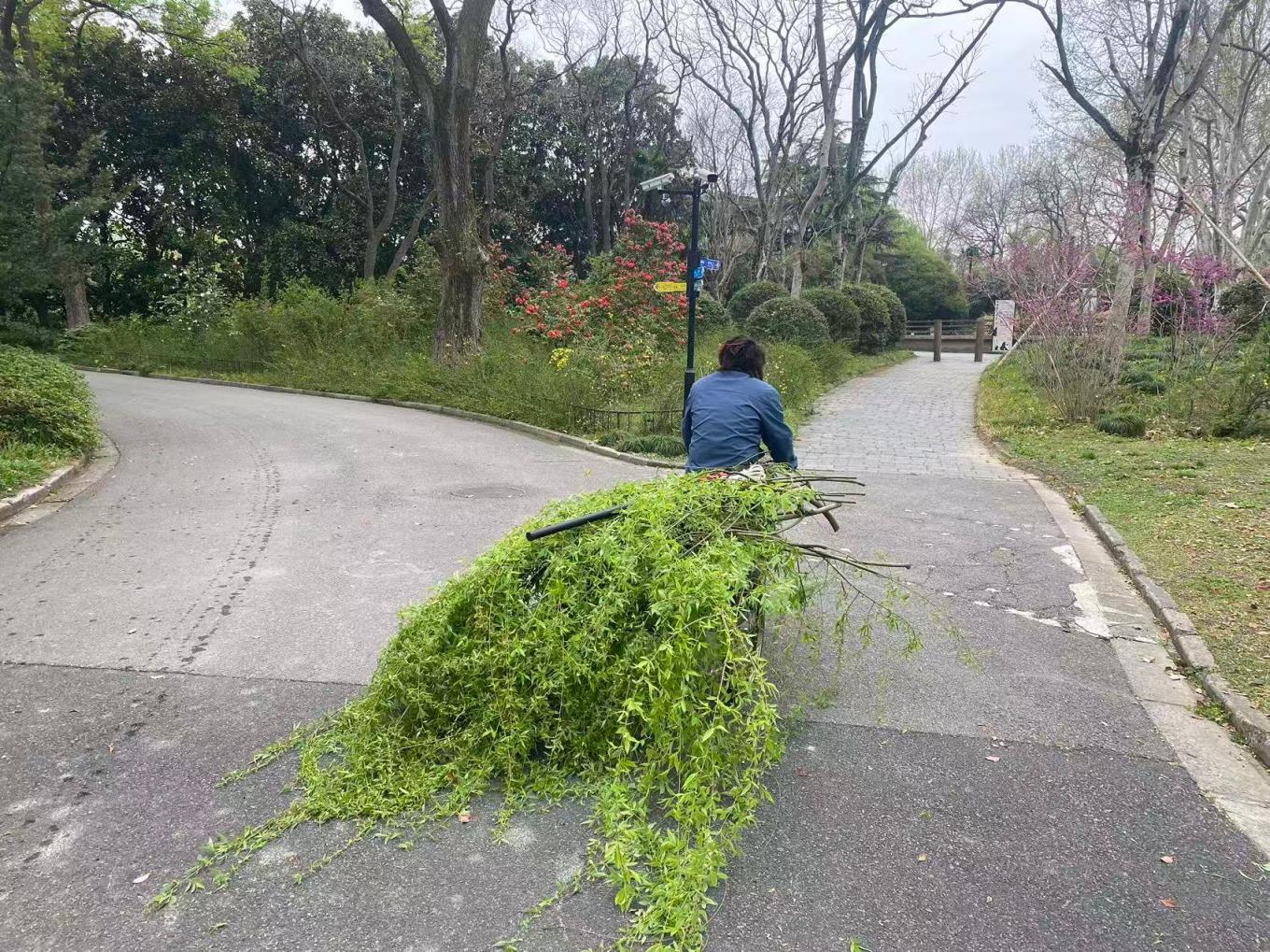 设施防护升级同样是本次更新的核心内容。此前保护树干的围挡因弯角剑羚顶撞出现损坏,工作人员在围挡外围加装一圈竹竿,有效防止弯角剑羚将长角插入其中,避免动物受伤,同时加固了树干防护设施。此外,为提升展区美观度与自然感,工作人员在食草区和料斗的顶棚上铺设天然枝叶,让整体环境更具原生态气息,与周边景观完美融合。