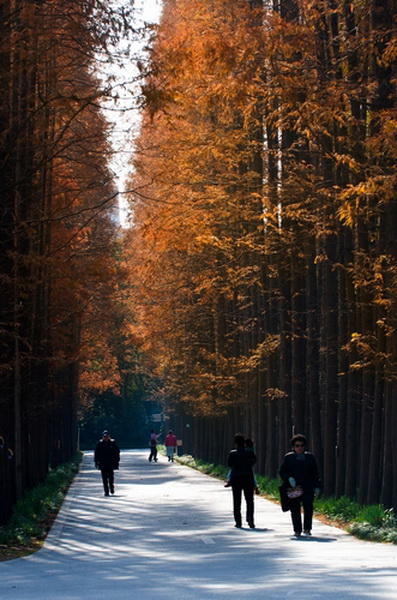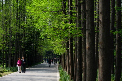 上海植物园有一条美丽的大道,那就是位于展览温室、兰室、盆景园中间的一条水杉大道。虽然这水杉路并不很长,但仍不能否认它是植物园内最美丽、最具特色的一条道路。