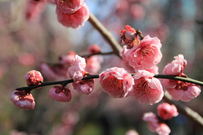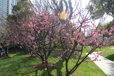 近期,静安雕塑公园梅园内东方朱砂、八重唐梅、晨露朱砂、南京台阁朱砂、千瓣朱砂、繁花朱砂等品种花开正盛。朱砂梅属真梅系直脚梅类,枝条直伸或斜展,不下垂成拱形也不扭曲。其花萼呈绛紫色,花单瓣、重瓣或半重瓣,花瓣桃红至深红色。花期每年2月中旬至3月中旬,目前正值盛花期,广大市民游客可前去欣赏朱砂梅的美丽身影。